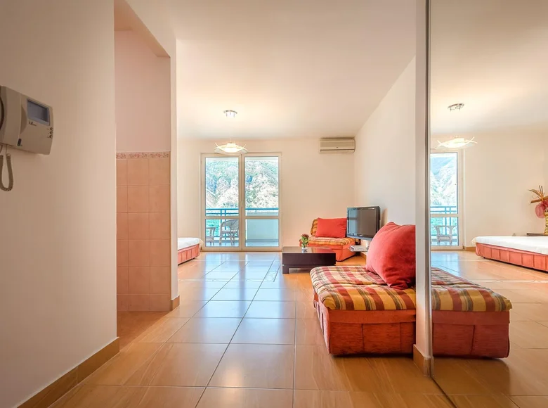 Apartment for sale in Dobrota, near the city of Kotor. The apartment has an area of 46 m2 and is located on 3 floors. Apartment layout: kitchen combined with living room, bathroom, terrace. The apartment is fully furnished. The room is air-conditioned, the apartment has satellite television and Internet. The apartment has a terrace with panoramic views of the sea and mountains. There is parking in front of the building, so there will be no worries about where to park your car. The apartment is only 250 m from the sea.