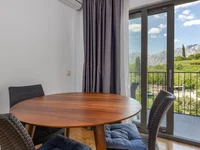 We offer you a modern 1+1 apartment in a new complex in Dobrota (Kotor). The apartments are located in a business class complex in the area of the Huma Hotel. There are several beaches within walking distance of the house. There is also all the necessary infrastructure within a short drive: restaurants, cafes, grocery stores and a long, beautiful embankment. Every detail of the interior of our apartment is selected with love, for your comfortable stay. The apartment consists of: — master bedroom with a large double bed; — spacious living room with sofa bed, TV, Wi-fi; — fully equipped kitchen with dining area (hob, oven, kettle, capsule coffee machine, dishwasher, refrigerator); — shower room (washing machine); — a terrace with stunning mountain views, equipped with outdoor furniture. The floors in the apartment are parquet, the bathroom is tiled. Split system for cooling and heating. Low fee for the service company. The complex has a reception, elevator, fitness room and swimming pool (additional charge). Ideal for long-term rentals.