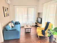 The apartment itself is south-facing, ensuring plenty of natural light throughout the day. It spans 96m² of internal space and boasts a spacious terrace with beautiful views of the sea and surrounding greenery which is not included in the square footage—an ideal spot to relax or entertain.