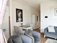 The apartment is furnished and equipped, sold with all furniture.