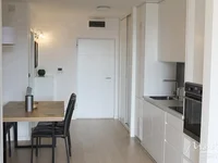 The apartment has a thoughtful layout: a bright living area with an open-type kitchen, a separate bedroom, a functional dressing room and a modern bathroom. The interior decoration is made using high-quality materials, the interior is decorated in a modern style. The spacious terrace is partially listed in the documents as a green area.