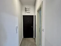 Nice 40m2 apartment on the 3rd floor in a new residential building with 2 elevators. The apartment has 1 bedroom, living room - kitchen, modern bathroom, terrace, hallway; 1 garage space. Access to the terrace from both rooms. The apartment is well equipped with stylish furniture, air conditioning and the most modern electrical equipment. A building with a quiet and beautiful area, close to Kips, other shops, a school, 3 minutes by car to the sea.