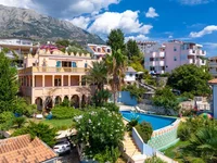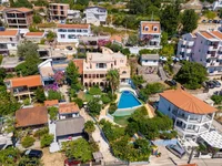 The 500 m² villa is located just 80 meters from the sea, with a spacious garden and swimming pool in front of the property. It has five bedrooms and four bathrooms with showers, providing comfort and functionality for the whole family or guests. The design of the building is authentic and inspired by a fairy-tale style, which gives this villa a recognizable character. The exterior and garden design further emphasize the uniqueness of the property, while the pool and outdoor spaces allow for outdoor living and relaxation. The villa is located in a well-maintained settlement, with immediate access to local infrastructure. Basic characteristics: