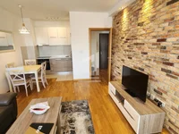 Na sedmom spratu zgrade, prodaje se u cjelosti opremljen stan od 43m2. Orjentisan jugo-istok, stan u sklopu cijene uključuje i garažno mjesto.