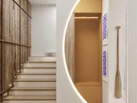 A private residential complex with garages, terraces, courtyards, and swimming pools.