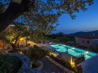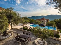 Peaceful Villa is situated on 1000m2 estate. Residential area is 200sqm on two floors, and its ideal for family holidays or group of friends.Villa consist sitting room, dining area, kitchen, four bedrooms, three bathrooms, two terraces and a balcony.On the ground floor there is a large, open plan sitting room/dinning area/kitchen, through the hallway is a bedroom and one bathroom. On the second floor there are two bathrooms, three bedrooms, balcony and terrace watching the sea and nature .In front of the house is free parking space with 8 parking spots.In back yard is spacious private outdoor BBQ area with garden funiture, private 40sqm swimming pool with water massage.