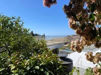 Two-storey house with an area of 205 m2 on a plot of 445 m2. House structure: 1-bedroom apartment on the ground floor; 2-bedroom apartment on the second floor (separate entrances). Terraces of 12m2 and 18m2. The house has 4 air conditioners, city water + backup storage, septic tank sewerage. Two parking lots for 3 cars; outbuildings. Garden: tangerines, oranges, kiwis, plums, apple trees, figs, olives, grapes. The city embankment and the beach are 600m away. Completely legal.