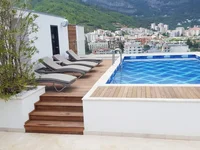 We offer for sale an exclusive 326 square meter penthouse in the heart of Budva. The penthouse features a spacious living room, three bedrooms, three bathrooms, and a huge 179 square meter rooftop terrace. The terrace features a private pool, a summer kitchen, and a relaxation area.