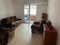 The property includes 58 m² of living space plus an additional 9 m², located on the third floor of a residential building. The apartment requires refreshing but is fully furnished and ready for use. From the terrace, there is a pleasant side sea view.