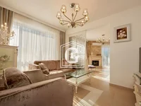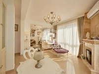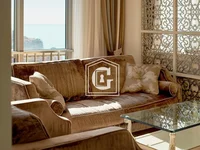 New residential complex with closed territory. One of the bedrooms is decorated as a children's room. The sofa in the nursery is arranged into 2 separate beds. View from the windows in the rooms on the sea and mountains. The ceiling height is 2.70m. 2 terraces with sea views. The kitchen-dining room is equipped with built-in appliances: Miele refrigerator, Smeg dishwasher, Gorenje stove, Smeg hood, built-in oven with Smeg microwave function, Smeg wine refrigerator. In the guest bathroom / household-washing room, a washing / drying machine Miele is installed, a cabinet is equipped for storing household equipment and household chemicals. Two bathrooms are equipped with shower cabins (master bedrooms), one bathroom is equipped with a bathroom. In each bathroom installed water heaters, electric towel dryers. Each room has a Samsung TV (5 pieces). Sold with furniture, lamps, appliances, curtains and paintings. Furniture, chandeliers, lamps of the highest quality of Italian production. One apartment on the floor. The staircase at the front door is equipped with furniture for storing shoes and a rack for hangers, which allows you to place shoes and outerwear.