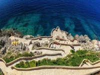 Luxury apartment consists of a corridor, kitchen, living room with a functioning fireplace and access to a view terrace, a guest bathroom, master bedroom with a bathroom and access to its own view terrace, a second guest bedroom with a dressing room (bathroom with prepared communications without equipment and decoration). From the terraces offers a breathtaking direct panoramic view of the sea.