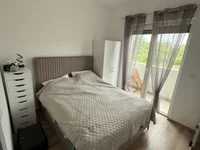 An apartment of 40m2 on the landing of a new building with an elevator. A parking space is included in the price. The apartment has 1 bedroom, living room with kitchen, terrace, bathroom. The apartment has furniture and appliances, everything is new and under warranty (some things are even under extended warranty). But there is an opportunity to purchase an empty apartment at a lower price. The beach is 500 m away. At the moment, the buyer is exempt from paying 3% tax.