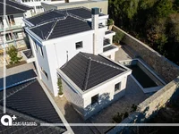 The villa consists of three spacious bedrooms, each with its own large bathroom, while the master bedroom also includes a walk-in closet. Each bedroom has its own terrace, allowing you to enjoy breathtaking views. The rooms are equipped with underfloor heating, air conditioning, ambient lighting, blinds, and a smart home system, providing complete comfort.