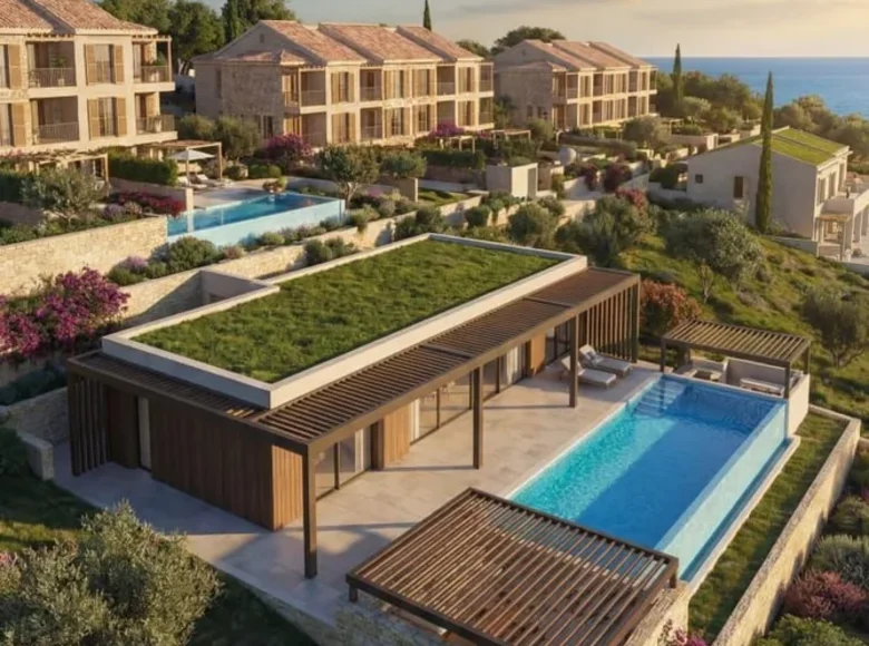 The villa has a flat roof and a pool with dimensions of 10 x 5 m.