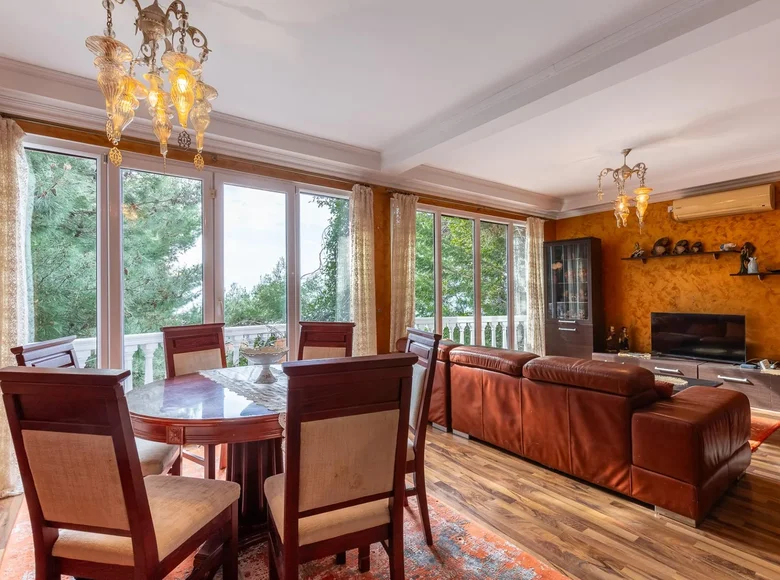 Spacious three-storey family house in Bar. The area of the house is 202 m2, and the area of the plot is 200 m2. On the first floor of the house there are apartments with one bedroom. The apartments are furnished and equipped with everything necessary. On the second floor there is a kitchen combined with a living room, a bathroom, a storage room and a small terrace. On the third floor there are three bedrooms, a bathroom and a spacious terrace with a summer kitchen and a barbecue area. From the terraces there is a beautiful view of the sea. In the yard of the house there is a parking for two cars. Now this space is used as a terrace for recreation. The house is sold fully furnished. The house has air conditioning. Cable TV is on. You will only need 5 minutes to the nearest beach.