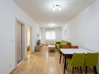 The apartment is located in a quiet residential area of Budva with developed infrastructure. The area is convenient for both permanent residence and recreation.