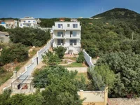 Ideal real estate for rental business: new villa overlooking the open sea in the Bar Riviera. A new spacious villa with a large territory is located in the picturesque Bar Riviera and has panoramic views of the Adriatic Sea. House area 360 m2, plot area 550 m2. Also on the site is a 30m2 garage and utility rooms 15m2. The house is equipped with central heating, air conditioning in each room, a full set of plumbing, installation to satellite TV, the Internet, video surveillance. The plot has a garden with fruit trees, an automatic watering system, and a stone grill. Each terrace of the house offers panoramic sea views. At 100 meters from the villa there are several beaches and restaurants in a very picturesque bay. The villa has three floors. Ground floor: - living room - dining room - kitchen - terrace - corridor - toilet - storage room - apartment for staff - toilet Second floor: - three bedrooms - bathroom - terrace - corridor - wardrobe - terrace Third floor - three bedrooms - bathroom - terrace - corridor Price: 290,000 euros