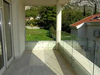 This two-bedroom apartment is located in Orahovac and features two terraces with mountain and sea view. The open-plan kitchen, dining and living area are finished in hardwood floors and first-class Italian ceramics. The two bedrooms are adjacent to that and both exit on a terrace. The large bathroom is located near the hallway. In addition, there is plenty of space to install large wardrobes throughout the apartment.
