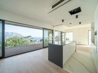 Panoramic windows offer stunning views of the sea and the old town of Budva. Penthouse has and internal area of 145 m2 includes a spacious and very bright living room combined with a dining area with access to a spacious terrace, kitchen, 3 bedrooms, 2 bathrooms, a corridor and a staircase leading to the roof terrace (118 m2).