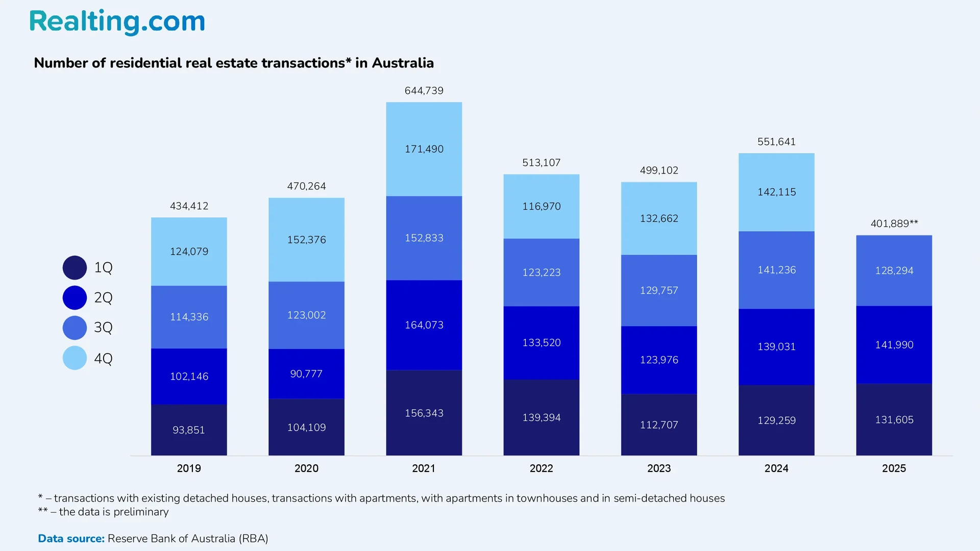 It is important to add that the above data are preliminary and will be revised. This means that in the future, the final number of transactions in the 3rd and 2nd quarters of 2025 will increase. As 2025 is coming to an end, in the first quarter of next year, the Australian Bureau of Statistics will publish data on the number of transactions in the last quarter of 2025, as well as a preliminary estimate of the total number of housing transactions for the entire 2025 year. Already now we can say that the final number of transactions on the residential real estate market in 2025 will be at least comparable to the 2024 result, and at most exceed it.