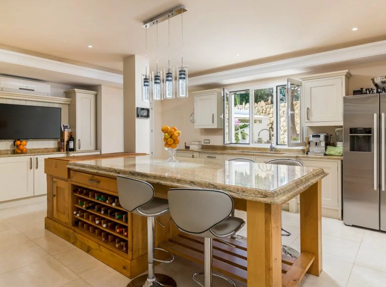 Do not be intimidated by the designation of this house as a five-room house — we are talking only about the bedrooms, in addition to which the house has several living rooms, lounges, and terraces. The main living room has access to the pool and a spacious terrace. Some interesting details: there is a separate apartment with a separate entrance and its own small plot for guests in the villa.