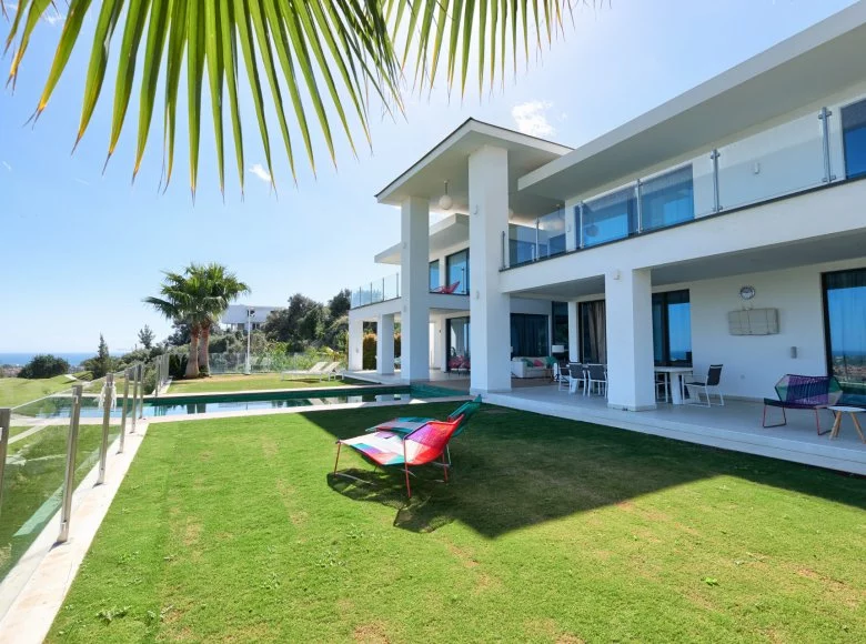 In the town of Estepona, a five-room villa is for sale for € 3,495,000. This is a one-storey ultra-modern house with an area of 617 sq. m. The plot’s area is 3900 sq. m., and, of course, it has a private pool with a lounge area, a beautiful garden, and even a tennis court.
