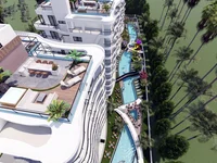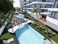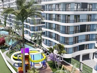 The project is situated on 10.000 m² plots. Here, there are 7 residential blocks. The complex offers a beautifully landscaped communal garden, playgrounds, swimming pools, an aqua park, and a pool bar. Each property inside the complex has a reserved parking space.
