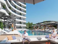 A magnificent project on the first line of the sea, the building resembles a cruise ship. Apartments with spacious balconies and terraces.