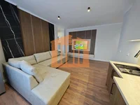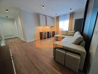 The apartment is located on the ninth floor of a new building with an elevator at Markata, near the center of Durres. The property has a total area of 84 m² and 76 m² according to the certificate, and is organized with an entrance corridor, a bathroom, a living room combined with a kitchen corner, another small corridor that leads to two bedrooms, where the master bedroom also has an attached balcony. The apartment is oriented southwest, which makes it sunny throughout the day. Additionally, the view is open with no tall buildings opposite. The apartment has been fully renovated, including plumbing, electrical work, built-in bathroom, new doors with paint, double-glazed windows, parquet flooring, and is furnished in a modern style and ready to live in. The apartment also includes a garage with an area of 21.1 m² included in the price. The property has proper mortgage documentation and is ready for sale at a price of 129,000 euros.