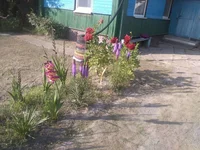Plac jest dobrze utrzymany i gotowy do użycia: drzewa owocowe rosną na nim, są łóżka, a także szklarnia do uprawy warzyw.