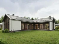 Przestronne rozwiązanie planistyczne, lakoniczne połączone fasady wykonane z nowoczesnych materiałów, maksymalne wykorzystanie światła i przestrzeni wewnątrz domu, duża powierzchnia przeszkleń zapewniają najwyższy poziom komfortu nowoczesnego życia na wsi.