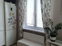 Stan mieszkania: schludna naprawa. Wszystko jest zrobione tak, jak powinno: na podłodze laminat i podgrzewane płytki, okna podwójnie oszklone, ściany są płaskie, tapety klejone w neutralnych odcieniach, sufit jest rozciągnięty.