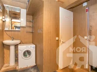 Wewnątrz domu jest ozdobiony drewnem, funkcjonalny zestaw jest zainstalowany w kuchni.