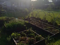 Plac jest dobrze zadbany i żywy: młody ogród został już posadzony, rosną iglaste, trawnik jest starannie utrzymywany, jest zainstalowany zbiornik septyczny.