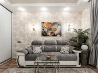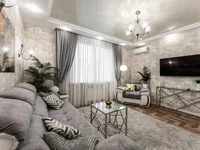 Nowoczesne naturalne materiały są używane w dekoracji mieszkania. W łazience - płytki i kanalizacja produkcji zagranicznej. Budynek w kuchni jest wyposażony w urządzenia gospodarstwa domowego europejskich producentów: zmywarka, kaptur, piekarnik, płyta kuchenna i lodówka.