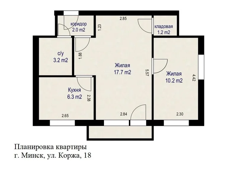 Apartament znajduje się w moskiewskiej dzielnicy Mińska, w odległości spaceru od dwóch stacji metra. Dom ma grube ściany, a sam apartament ma wysokie sufity.