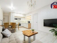 Kuchnia-salon jest centrum funkcjonalne mieszkania. Na podłodze porcelana, kuchnia z fasadami dębu. Wszystkie wbudowane urządzenia pozostają, w tym piekarnik Bosch, kuchenka indukcyjna, zmywarka Bosch, lodówka i kuchenka mikrofalowa Samsung. Zainstalowany jest trzystopniowy filtr wody pitnej. Stół jest zrobiony z popiołu. W salonie pozostaje sofa, TV i automatyczne zasłony. Okna wychodzą na podwórze, a wentylacja i wentylacja zapewnia ciszę i komfort.