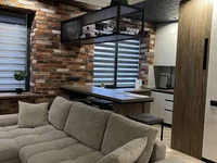 Położony na 2 piętrze 5 - piętrowy ceglany dom zbudowany w 1966 roku. Powierzchnia apartamentu według Narodowej Służby Bezpieczeństwa wynosi 53,2 metrów kwadratowych, całkowita powierzchnia 51,4 metrów kwadratowych, powierzchnia mieszkalna 39,3 metrów kwadratowych, powierzchnia kuchni 7.3 metrów kwadratowych. Mieszkanie posiada przeszkloną loggię, łazienkę. Ciepły i nowoczesny apartament z designerską naprawą: okna PCV, wewnętrzne drzwi z ukrytą instalacją - eko-łyżka, metalowe drzwi frontowe, na podłodze - laminat (umieszczone na wyściełaniu oprócz izolacji akustycznej), w płytkach łazienkowych nowoczesnej próbki, a także zastąpiony: cieplejsze ręczniki, kąpiel, rury hydrauliczne, instalacja. Zainstalowano kocioł, przeprowadzono nowe okablowanie elektryczne, klimatyzację oraz budowę odkurzacza. Mieszkanie jest wykonane projektanta naprawy w stylu Loft, podwieszane półki z oświetleniem do przechowywania napojów i dań uzupełnia i podkreśla ten styl. Kuchnia w jasnych odcieniach wizualnie rozszerza przestrzeń. Prawie wszystkie meble pozostaje, mieszkanie jest gotowe do życia.