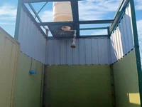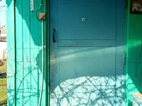 Na stronie znajdują się: letni prysznic, toaleta, szopa, rama do szklarni.