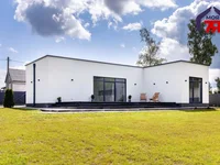 - Dom jednopoziomowy zbudowany w 2025 roku został zbudowany na fundamencie Pile-Rostwerk. Ściany wykonane są z bloków krzemianowych gazowych o grubości 300 mm i izolowane dodatkowym 100 mm. Podłogi i podłogi są izolowane, co gwarantuje efektywność energetyczną. Dach jest pokryty elastycznym dachem.