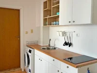Zintegrowany aneks kuchenny z kuchenką, pralką, zlewem i lodówką