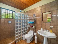 Wchodząc przez metalową bramę, można znaleźć parking dla dwóch pojazdów przy basenie nurkowym i prysznic na zewnątrz. Okryta kuchnia open- powietrze jest idealny do gotowania na zewnątrz. W sypialni na dole znajduje się łazienka z łazienką, a w drugim piętrze apartament, dostępny przez pięknie zaprojektowany dziedziniec, oferuje wspaniałe widoki dżungli i własną łazienkę.