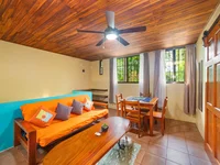 Przytulne i proste, dom posiada dwie oddzielne jednostki mieszkalne, co pozwala na wspólną przestrzeń lub prywatne hosting. Zbudowany z betonu z sufitów z drewna tekowego i posadzek, jest zbudowany do końca. Bujne tropikalne ogrody oferują prywatność i malownicze widoki z tarasu i balkonu.