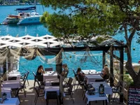 Piękny solidny kamienny budynek z restauracją na parterze z tarasem z widokiem na morze!
