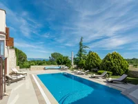 Willa z rzymskim basenem, położona w małej istryjskiej miejscowości turystycznej Rakalj, 1,5 km od morza i 25 km od pięknego zabytkowego miasta Pula. Willa jest ekskluzywnym przykładem luksusowej willi. Ta wspaniała willa emanuje pierwszorzędną elegancją oraz wyjątkowym wyglądem zewnętrznym i wewnętrznym. Willa jest w pełnej harmonii i symfonii z otoczeniem i naturalnym pięknem tego pięknego krajobrazu. Willa jest odzwierciedleniem eleganckiego połączenia kamienia i drewna, odważnego designu i odważnej zabawnej architektury. Willa jest rozłożona na nieruchomości o powierzchni 1005 m ², a sama willa ma powierzchnię 350 m ² i ma dwa piętra: parter i pierwsze piętro. Do nieruchomości willi prowadzą kamienne schody prowadzące na przestronny parter rezydencji. W tej części znajduje się salon wyposażony w wygodne siedzenia, piękny kominek i nowoczesną technologię. Cała strona salonu jest usiana szklaną ścianą, która rozciąga się na powierzchni całej ściany i oferuje niesamowity widok na „zieloną ścianę”, tj. piękny krajobraz, wyspa Cres, Lošinj i cała zatoka Kvarner. . Na parterze znajduje się również otwarta, w pełni wyposażona, nowoczesna kuchnia, dwie jadalnie z pasującymi meblami, inny salon wyposażony w sofy, toaleta dla gości i sypialnia z nowoczesną łazienką. W tej części willi znajduje się również pokój pomocniczy. Ogromne kamienne schody łączą parter z pierwszym piętrem. w których znajdują się 2 sypialnie z podwójnymi łóżkami, dwie łazienki i taras z niepowtarzalnym widokiem na cały ogród i bogatą zawartością tego eleganckiego i wdzięcznego arcydzieła. Wyjście z parteru rezydencji prowadzi do pięknego dziedzińca, na którym pierwotnie zaprojektowano i zaprojektowano zadaszoną letnią hacjendę, meble wypoczynkowe i grill. Ta przestrzeń jest idealna do spotkań towarzyskich i relaksu w dobrym towarzystwie oraz w najwyższej ofercie gastronomicznej, z której region Istrii jest powszechnie znany. Nieruchomość posiada również pensjonat o powierzchni 50 m ² z salonem na otwartym planie, kuchnią, sypialnią i łazienką. W centralnej części nieruchomości znajduje się piękny podgrzewany basen z przeciwprądem o długości 40 m ². To naprawdę ukoronowanie tej uroczej posiadłości. Do dyspozycji gości jest także prysznic i toaleta na świeżym powietrzu. Willa jest w pełni klimatyzowana i ma centralne ogrzewanie gazowe. Główne cechy nieruchomości: Widok na morze Odległość od morza Prywatność i spokojna lokalizacja Podłogi wewnętrzne i zewnętrzne - wyłożone kamieniem - różne panele słoneczne Piwnica Rzymski basen z pływaniem pod prądem Ponadczasowy styl.