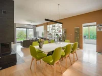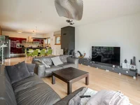 Parter: duży salon zintegrowany z kuchnią, jadalnią i wyjściem na taras i ogród, WC dla gości i garaż dla 2 samochodów.