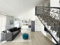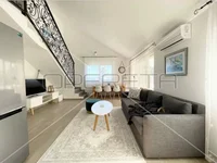 The apartment is on two floors, modernly decorated and spacious.It consists of an open space living room, kitchen and dining room, 2 bathrooms and 3 comfortable bedrooms.The entire western side of the building has a balcony that is large enough for several people and is isolated from the other tenants of the building.