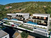 Zadziwiająca luksusowa willa znajduje się w cichej miejscowości Dalmacji w pobliżu Rogoznica w ogrodzonym kompleksie trzech nowoczesnych willi zaledwie 90 metrów od morza, z niesamowitymi widokiem na morze!