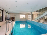 Na parterze domu znajduje się duży salon, kuchnia, jadalnia i mała toaleta. Oprócz powierzchni mieszkalnej znajduje się kryty ogrzewany basen, który jest podgrzewany przez układ słoneczny.
