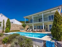 Discover this exquisite house with a luxurious swimming pool, nestled above Crikvenica, boasting a generous 550 square meters of living space. Situated right on the border of a lush green belt, this property offers unparalleled tranquility and breathtaking views of the picturesque island of Krk, making it the ultimate holiday villa.